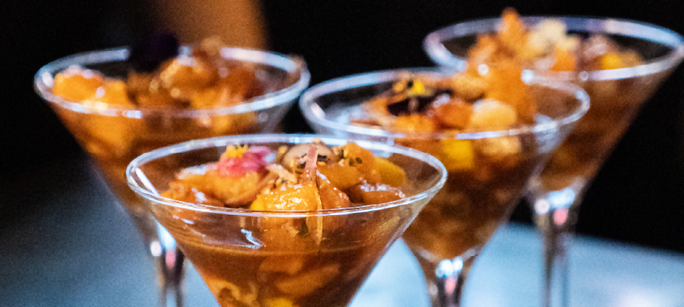 El menú de la noche fue una prueba de la maestría de Komiyama: se sirvió un audaz ceviche nikkei de frutos de mar y batatas glaseadas, que se acompañó junto a un vino Pago del Cielo “Celeste Verdejo”.